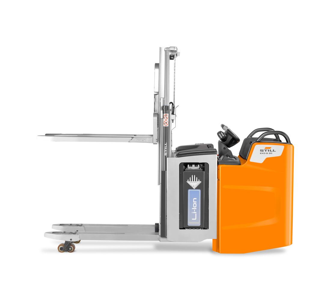 Con el EXD-S, enfrentar los retos del almacén es más sencillo y eficiente. Este apilador doble con plataforma fija ofrece una capacidad de manipulación excepcional y se adapta con total flexibilidad a distintos tipos de carga. Gracias a su potente motor de tracción y elevación, combinado con un chasis de cinco ruedas y estabilizadores amortiguados, garantiza un rendimiento ágil y seguro incluso en rampas. Su diseño compacto facilita maniobras precisas en pasillos estrechos, mientras que el sistema Curve Speed Control ajusta automáticamente la velocidad en curvas para una conducción estable. Todo esto se complementa con el volante STILL Easy Drive, regulable en altura, que permite un manejo ergonómico e intuitivo con una sola mano, para que cada movimiento sea fluido y natural.