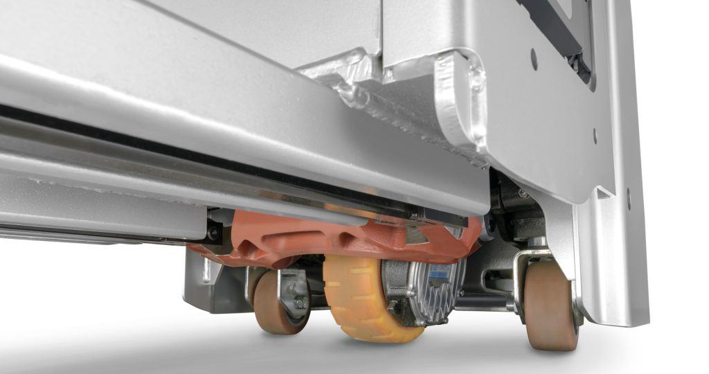 - Movimiento solo cuando el operario está bien posicionado: El sensor opcional detecta si los pies están dentro del contorno de la carretilla antes de activarse.
