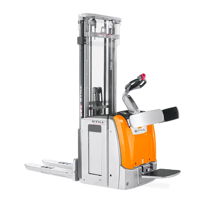 Gracias a su motor potente y de bajo mantenimiento, junto con controles precisos diseñados para usuarios diestros y zurdos, el EXV‑SF alcanza niveles de productividad sobresalientes. Elementos como el indicador opcional de capacidad residual, la reducción de velocidad en curvas (incluida de serie), y el timón combi opcional garantizan la seguridad del operario y un control total incluso en espacios reducidos. Robusto y preciso, este apilador asegura un flujo de materiales continuo y fiable, desde el área de prealmacenamiento hasta la manipulación en estanterías. Además, la plataforma abatible mejora significativamente la comodidad del operador en recorridos largos.