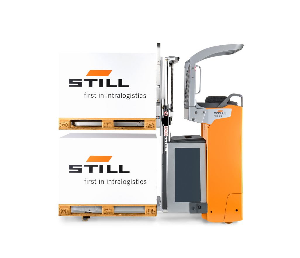 El FXD 20 encarna la combinación ideal entre alto rendimiento y confort operativo. Este apilador de doble nivel permite transportar simultáneamente dos palés no apilables, alcanzando una capacidad de carga total de hasta 2000 kg y una velocidad de traslación de hasta 12 km/h. Con una altura de mástil superior a los 2,3 metros y una capacidad de hasta 1200 kg en el mástil, se adapta a una amplia variedad de tareas, ofreciendo una solución potente y versátil para la manipulación de cargas.