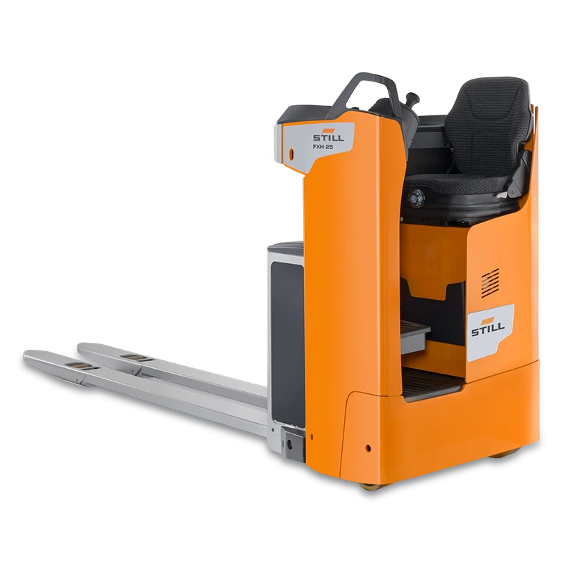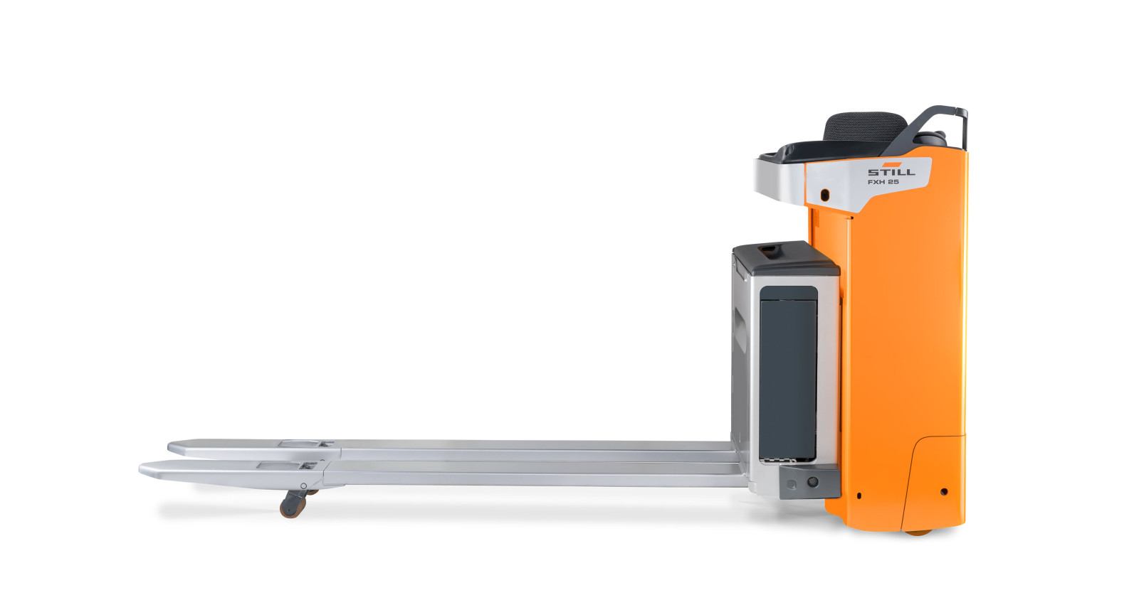 Los pedales, simples o dobles, ofrecen un transporte ágil y preciso de las cargas, mientras que el Joystick 4Plus permite manejar la elevación sin necesidad de cambiar de mano. La pantalla a color, junto con la unidad de control, muestra de forma clara la información más importante, como el estado de la batería, la dirección de marcha y las fechas de servicio próximas. Con la reducción automática de velocidad en las curvas y el sistema de cambio lateral de batería estándar, la FXH asegura una operación segura y eficiente en todo momento.
