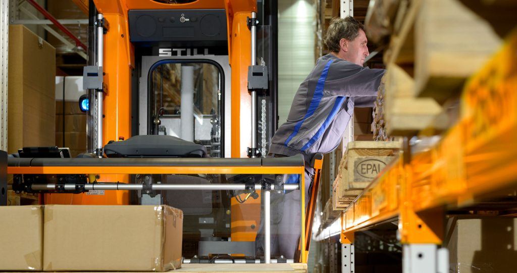 - Uso eficiente del espacio: La altura de elevación de hasta 14 metros y el diseño compacto permiten aprovechar al máximo los pasillos estrechos en almacenes de gran altura.