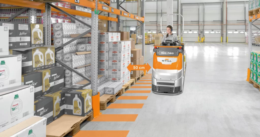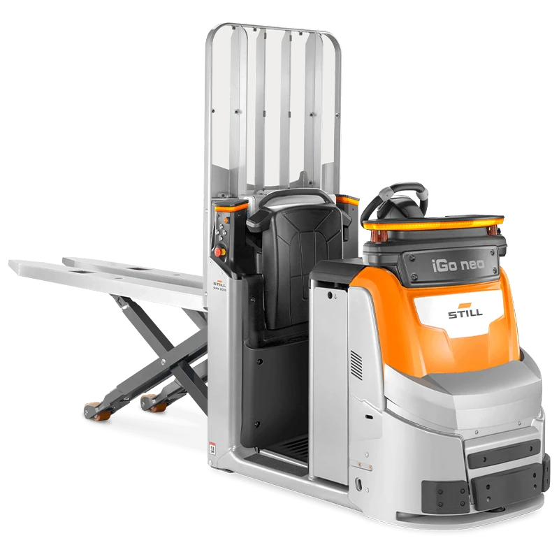 - iGo neo: reduce hasta un 75 % las veces que el operario sube y baja del vehículo, mejorando la eficiencia y reduciendo la carga de trabajo, lo que incrementa el rendimiento en la preparación de pedidos en comparación con los métodos tradicionales.