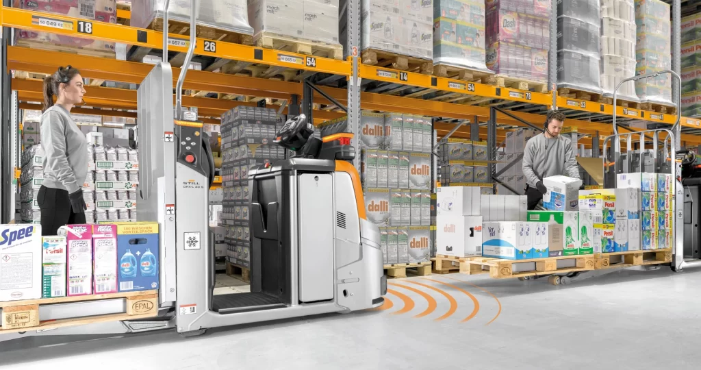 Además de su capacidad para moverse de forma autónoma, el OPX iGo neo mejora considerablemente el rendimiento en la preparación de pedidos. El operario puede centrarse exclusivamente en su tarea, mientras el vehículo se encarga de la traslación y la dirección. La señalización LED indica claramente el modo de funcionamiento, y el control manual está disponible en todo momento. Esta automatización reduce errores operativos y mejora la ergonomía del puesto, ya que elimina hasta el 75 % de los movimientos de subida y bajada del vehículo. También se minimizan los trayectos a pie con carga, lo que se traduce en una mayor eficiencia, menor fatiga y un flujo de trabajo más fluido en el almacén.