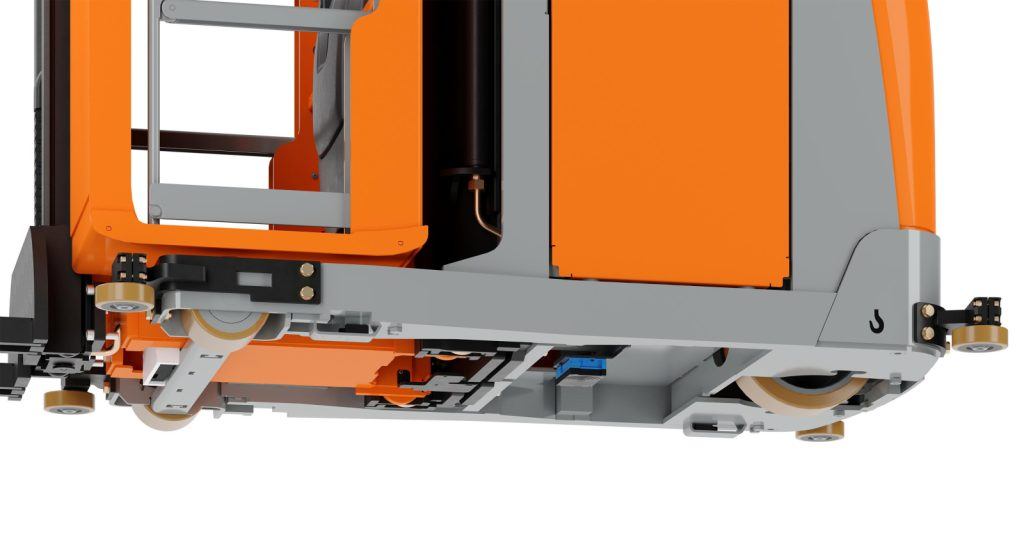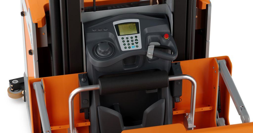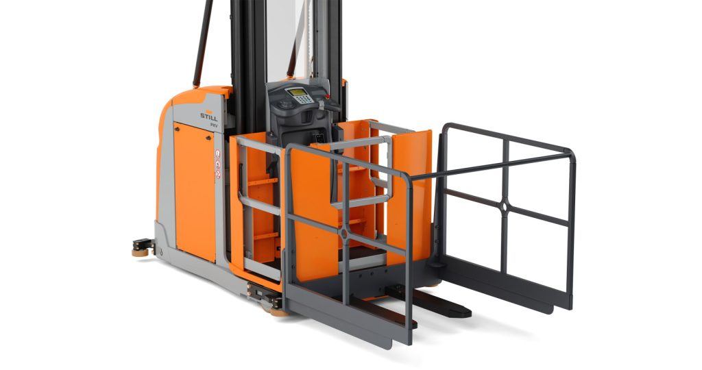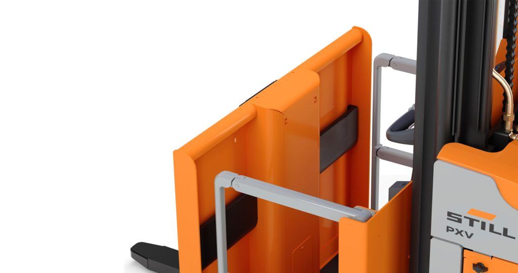 - Barreras laterales abatibles (opcionales) que acercan la carretilla a la estantería, facilitando un picking más rápido, ergonómico y seguro.