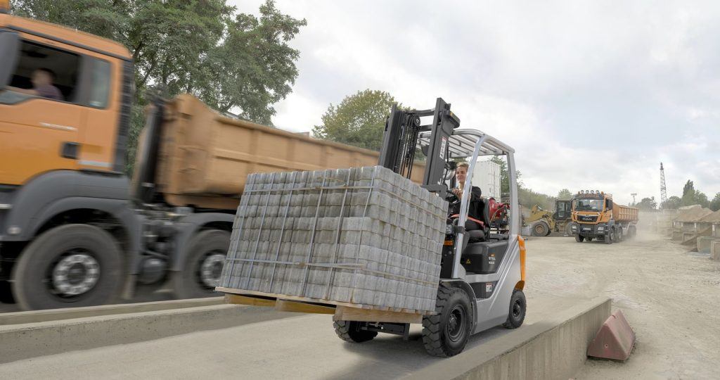 - Manipulación de cargas pesadas sin complicaciones: Gracias a su alta capacidad de carga residual, esta carretilla permite levantar mercancías pesadas a la altura necesaria sin comprometer la estabilidad ni la seguridad.