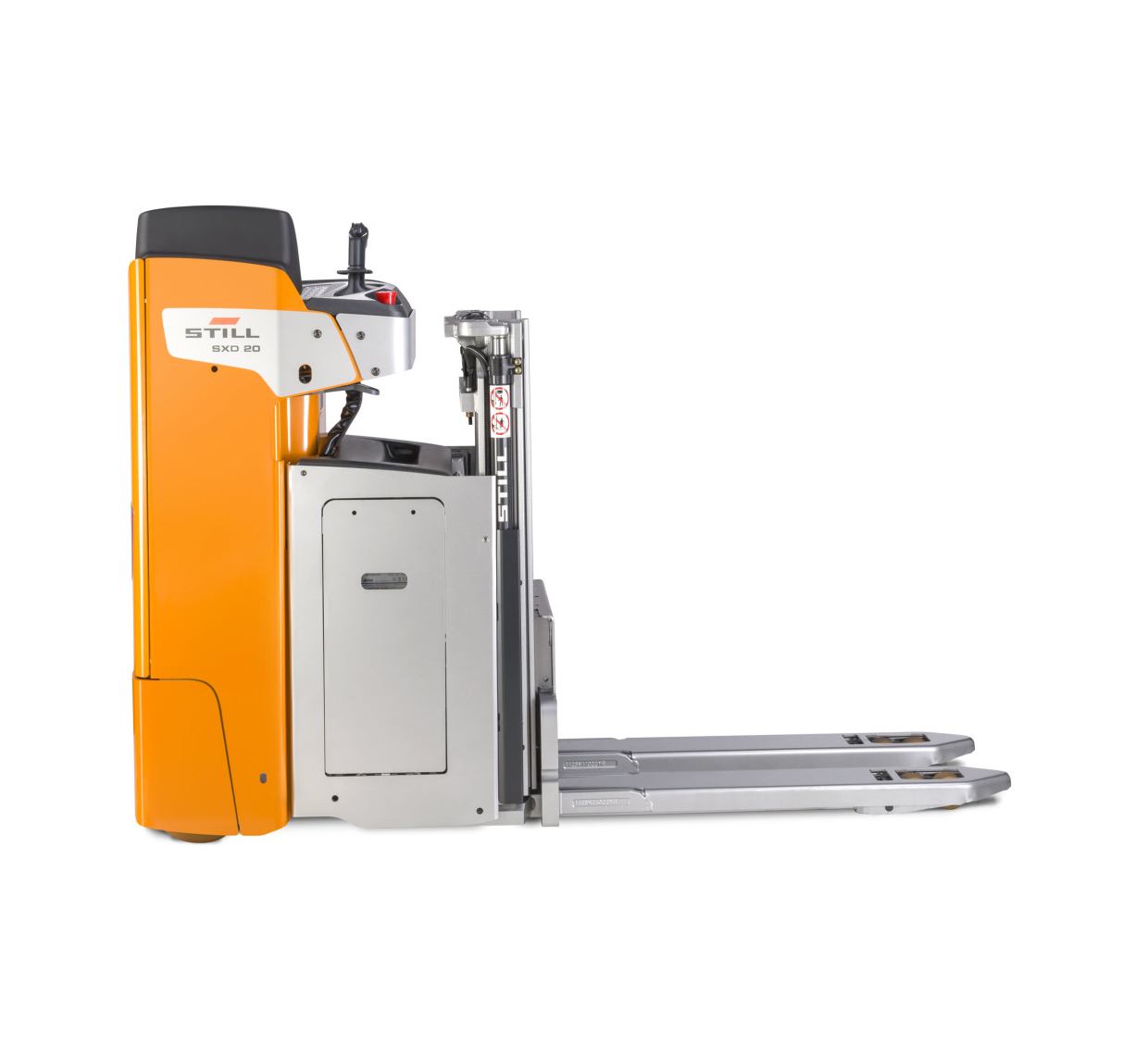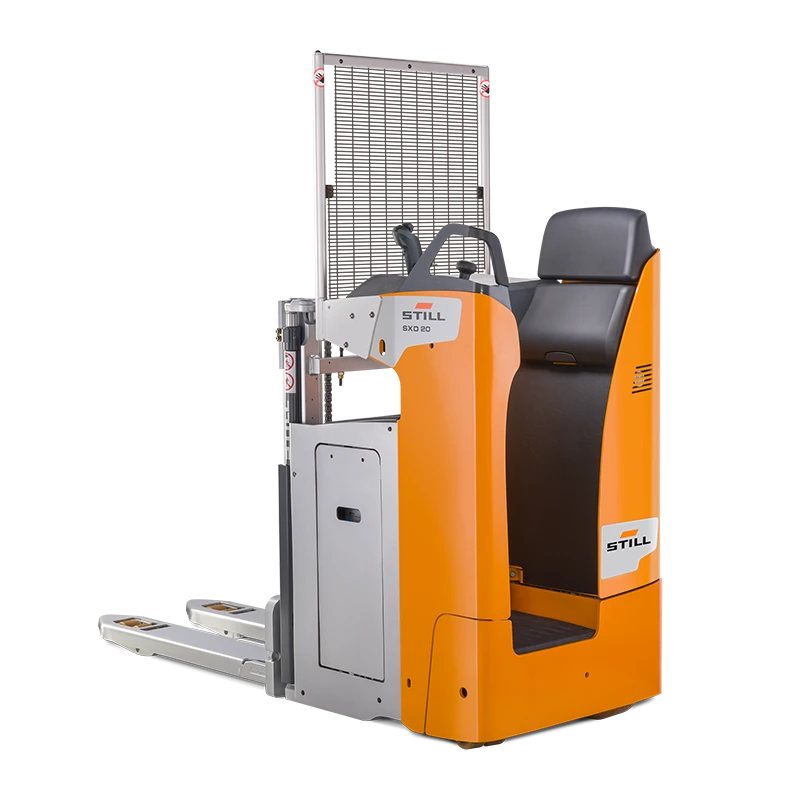 El SXD ha sido diseñado para responder con eficacia a los entornos logísticos más exigentes. Permite realizar operaciones de transporte horizontal, carga y descarga de camiones y manipulación en dos niveles de forma segura y eficiente. Su capacidad para mover dos palés estándar simultáneamente optimiza el tiempo en cada operación. Gracias a la opción de nivelación automática del chasis, se garantiza un desplazamiento suave incluso en pendientes. Su principal fortaleza es la versatilidad: como apilador de doble altura, puede transportar 800 kg en el mástil y otros 1.200 kg en la elevación inicial. Si se prescinde de esta última, puede funcionar como apilador eléctrico convencional, manipulando hasta 1.200 kg o incluso 2.000 kg en un único palé.